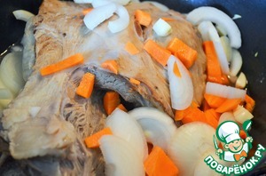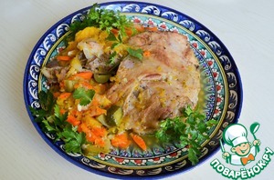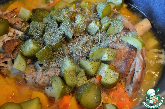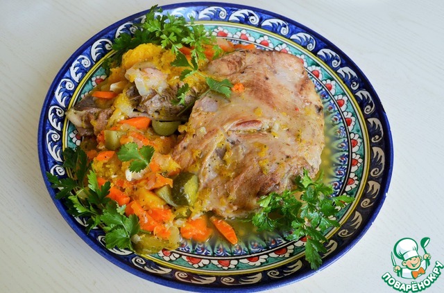 В осенний промозглый денек самое время подать на обед мясо. Давайте потушим баранью ногу, да не просто, а в рассоле от маринованных огурцов "6 соток". Кислая среда не даст мясу "расползтись", нога останется целой, но мягкой и сочной. Небольшим бонусом овощи - морковь, тыква, лук и чеснок. Угощайтесь.