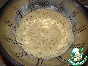 Макароны отварить в подсоленной воде, откинуть на дуршлаг