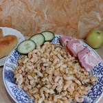 зел. лук и укроп. Макароны рожки готовила, как гарнир к печени.