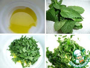 Готовим масляно-мятную заправку. Для этого смешайть сок лимона, оливковое масло и измельченные листья мяты.