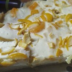 Тесто раскатать по размеру формы ( у меня 24 см) и сделать бортики. Выложить чередуя дольки яблок и мандарины. Произвольно выложить дольки цукатов. Сверху вылить заливку и отправить пирог в духовку при 180 гр на 40 минут. Пирог полностью остудить, чтобы сметанная заливка "схватилась", хотя нам нравится больше даже теплый пирог с нежной прослойкой.