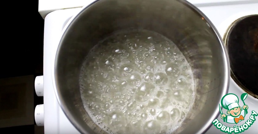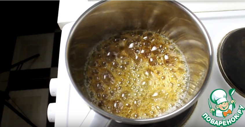 1. Соединяем в сотейнике сахар с водой на медленном огне, далее ждем пока весь сахар растает, но не размешиваем, чтобы сахар не кристаллизовался.