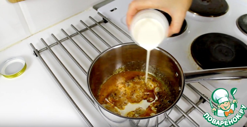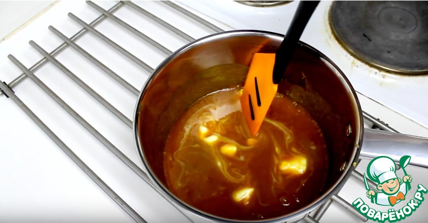 3. Когда смесь начнет коричневеть снимаем с плиты, главное не пропустить момент, иначе соус подгорит и будет привкус горечи.