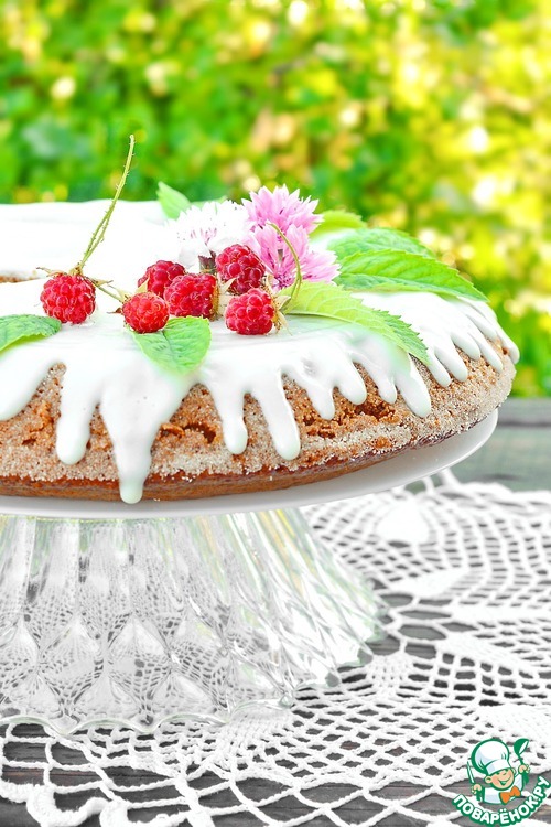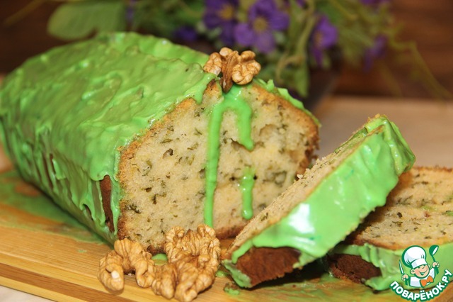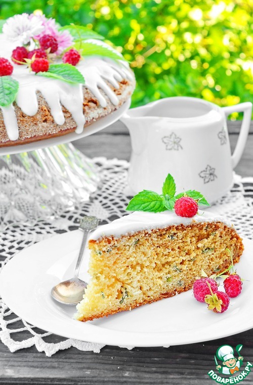 Покройте кекс глазурью, украсьте листиками мяты и ягодами (по желанию)