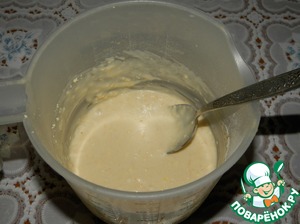 Добавить ложку растительного масла, муку, смешанную с разрыхлителем. Хорошо перемешать. -