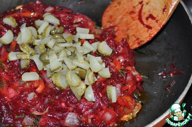 Рецепт «Тушеная свекла с маринованными огурцами»: