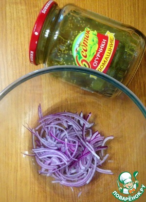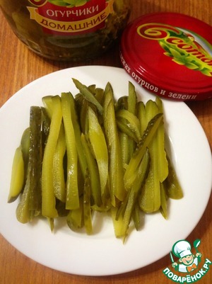 Огурцы маринованные тоже соломкой. Я использую огурчики от ТМ "6 соток".