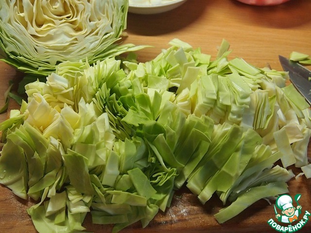 • Капусту крупно порезать.