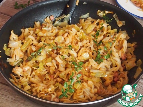 И правильно! Капуста здесь очень вкусная получается, а с копчёной грудинкой или беконом ммм... Ум отъешь!
