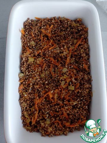 Гречку с овощами выкладываем в форму для запекания (у меня форма 2,2 л).