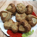 Берём формочки, кладём в них на 2/3 тесто. У меня получилось 8 штук, то есть полная порция - 16 штук.