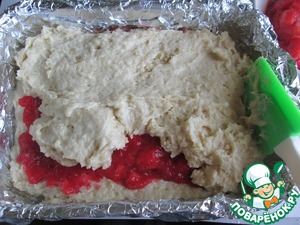 • На слой начинки выкладываем остальное тесто и разравниваем.