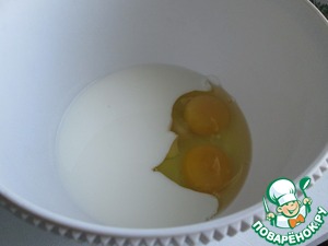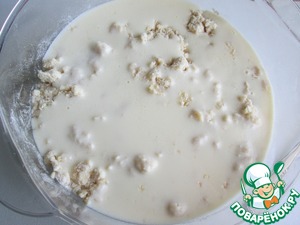 • Затем жидкую смесь вливаем в мучную и хорошо перемешиваем.