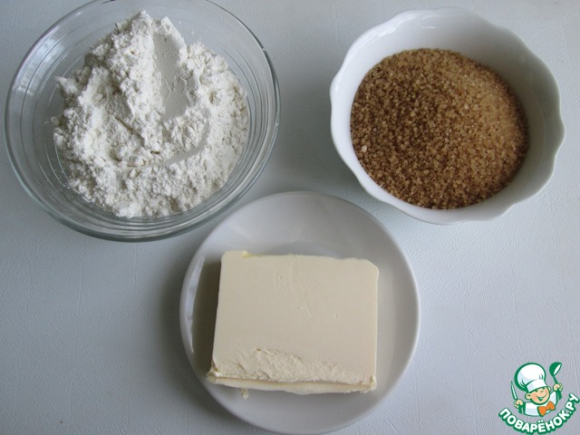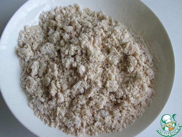 • Начинка готова, теперь приготовим штрейзель. По желанию можно взять 50 г муки и 50 г миндальной крошки, как в рецепте, или как у меня - 100 г муки.