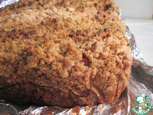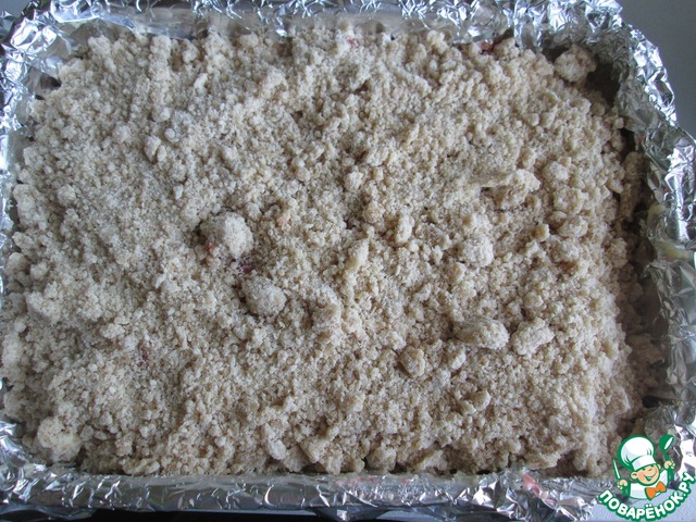 • И сверху посыпаем штрейзелем. Ставим в духовку, разогретую до 180 градусов и выпекаем 55-60 минут.