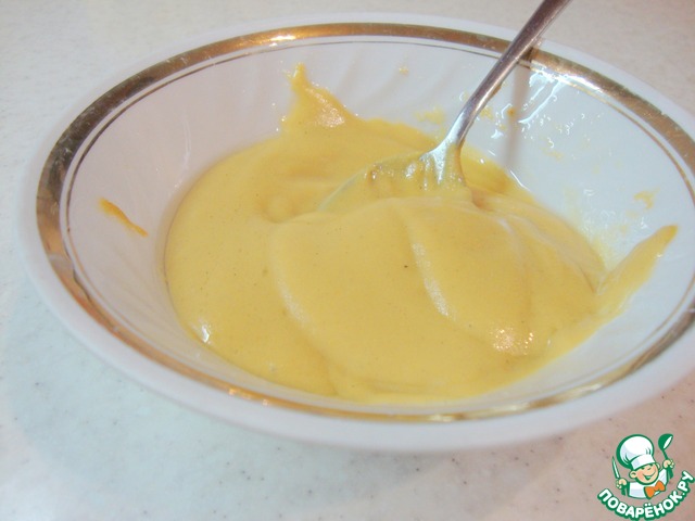 Горчицу смешать с маслом.