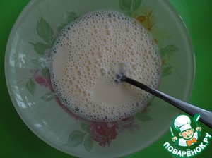 • Приготовить льезон: взбить вилкой яйцо, добавить 4 ст. л. молока, ещё раз взбить.