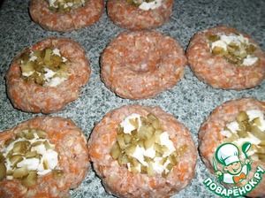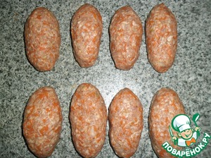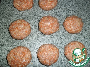 • Из подготовленного фарша сформовать шарики, приплюснуть их ладонью,