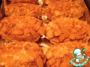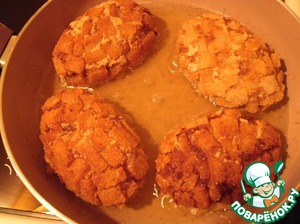 • Обжарить в большом количестве растительного масла на сильном огне, с каждой стороны по 5 минут, до золотистого цвета. Можно это сделать во фритюрнице.