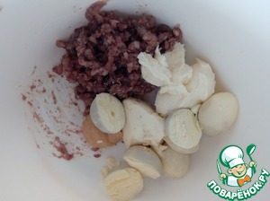 Филе сельди дважды пропускаем через мясорубку (у меня попалась икра, ее я тоже пустила в дело). Добавляем к нему сыр и масло.