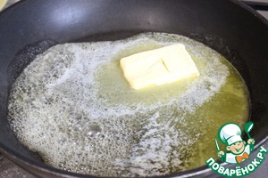 В глубокую сковороду кладу сливочное масло. Включаю средний огонь и растапливаю масло.