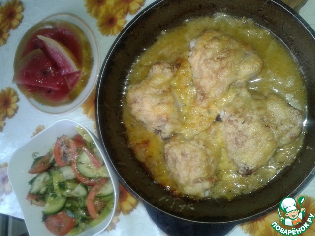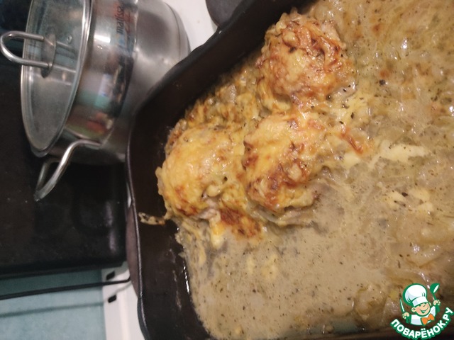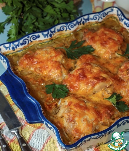 Рецепт «Куриные бедра в луково-сырном соусе»: