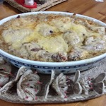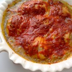 Затем снимаю с огня и выливаю луковый соус в огнеупорную форму. -