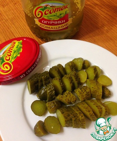 • Огурцы маринованные от ТМ "6 соток" нарезать кружочками, не слишком мелко.