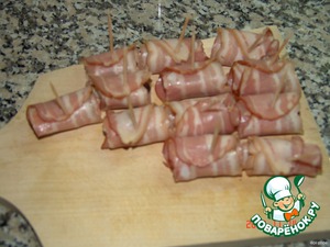 Подготавливаем ингридиенты, режем бекон (если купили не нарезанный). Разогреваем заранее духовку до 180С.