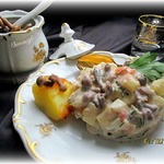 "Осень настала, холодно стало..." Решил сделать салатик из грибов и картошки. Подойдет скорее нам мальчикам (калорий многовато), но и девочки могут попробовать. Использовал грузди. Очень их люблю. Тверденькие и хрустящие.