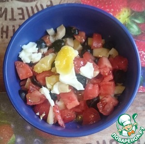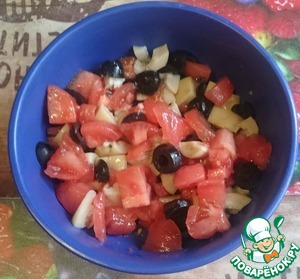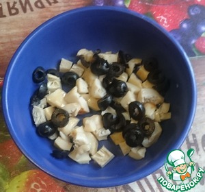 (Маслины лучше использовать черные. Но если будут зеленые - кладите меньше соли) -