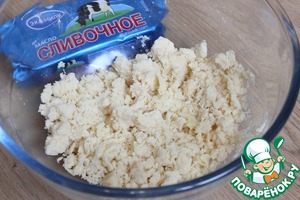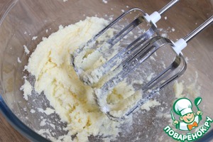 Смешиваю сливочное масло и сахар, взбиваю миксером до пышности. -