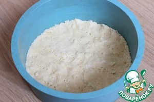 Выкладываю песочную часть в форму, распределяю по дну и слегка утрамбовываю (у меня силиконовая, ничем не смазывала). В нескольких местах накалываю вилкой.
