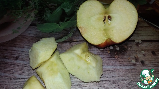 Точно также с яблоком. Фрукты сложить в кастрюлю.