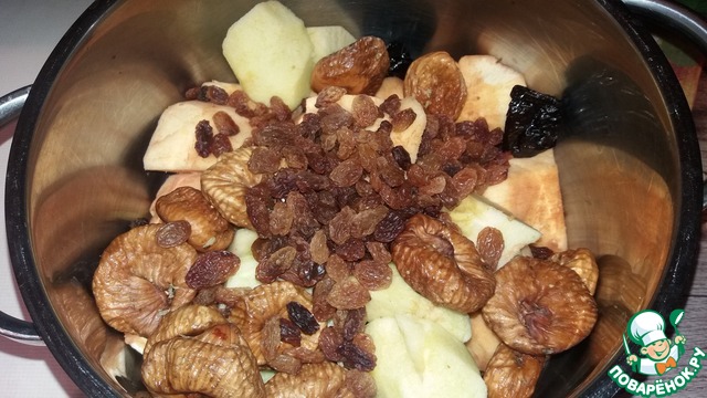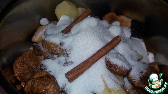 Подготовить сухофрукты. В кастрюлю отправляем инжир,
