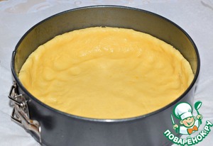 В форму (диаметр 20 см) выложить бОльшую половину теста, равномерно распределить его и сделать бортики по краю формы (меньшую часть теста пока стоит убрать в холодильник)