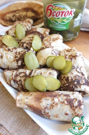 Я подавала паштет, как начинку в блины. Намазала блины и завернула плотными рулетами. Получилось, очень нежно, вкусно и сытно!