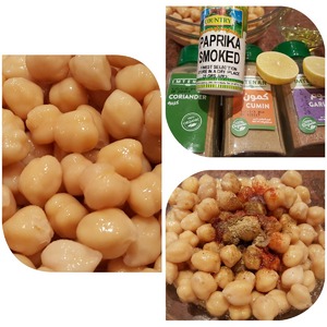 Выкладываем в подходящую посудину тахину, добавляем отварной нут, специи и соль. В обязательном порядке в хумус идут: лимонный сок, оливковое масло, чеснок и зира (кумин). Остальные специи по Вашему желанию, но очень неплохо нут сочетается с кориандром и паприкой (отлично подходит копчёная), так же можно добавить острый молотый перец. Самое главное условие - все специи должны быть молотые, чтобы в хумусе не попадались твёрдые кусочки.