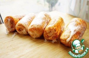 Заворачиваем рулетики в пищевую пленку и отправляем в холодильник, как минимум на 20 минут.