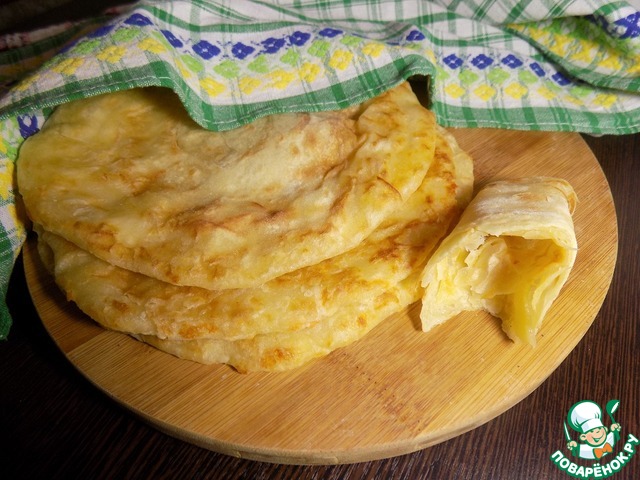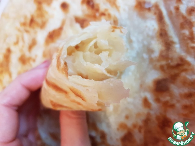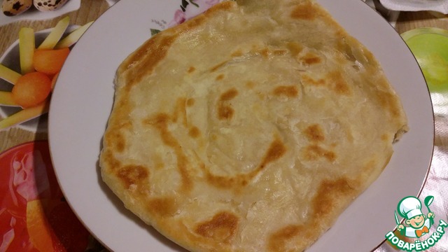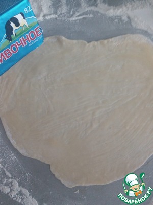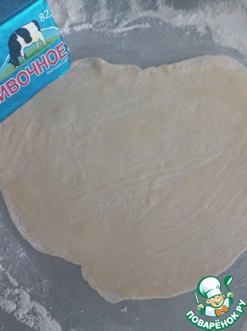 Каждую часть теста тонко раскатываем и обильно смазываем маслом.