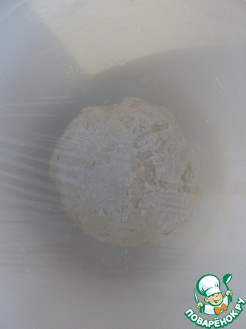 Замешиваем мягкое и эластичное тесто. Закрываем ьесто пищевой пленкой и убираем в холодильник на 30 минут.