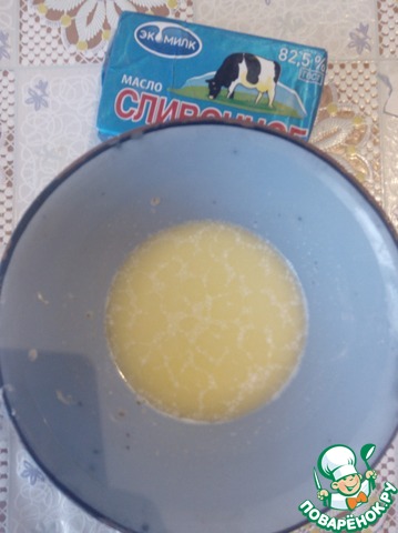 Сливочное масло растапливаем в микроволновой печи и смешиваем с растительным маслом.