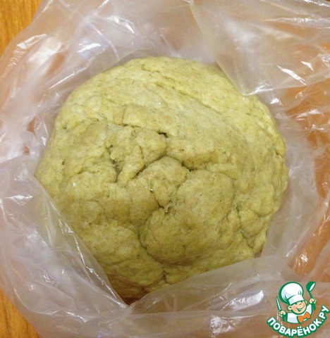 Постепенно добавить воду. Заместить тесто, завернуть в пакет и дать отдохнуть минут 30.