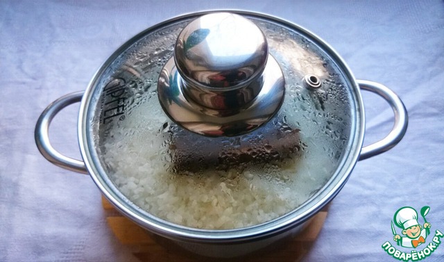 Снимаем кастрюлю с огня и даем постоять еще 10-15 минут. Так еще не впитавшаяся в рис вода точно займет свое место.