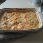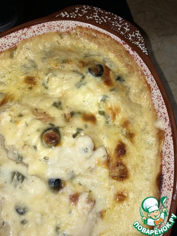 Молока в соус добавила чуть меньше, чтоб не получился слишком жидким. И подержала его на огне дольше, минут 15, не допуская кипения. И - не было зелёного лука, вкус все равно вышел великолепным. Буду и дальше готовить) Спасибо за рецепт!)