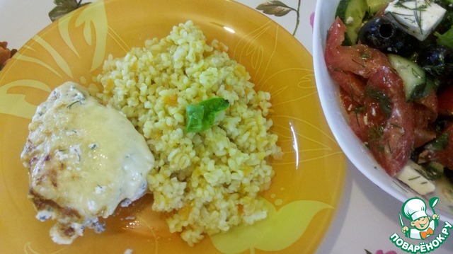 Делала все строго по рецепту, кроме того что у меня не было зеленого лука и я заменила его салатным фиолетовым. И в следующий раз наверное перед запеканием я все же помариную куриную грудку для большей сочности.