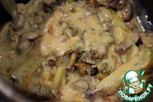 Этот рецепт готовлю не менее 25 лет. Он всегда получается удачным. Тающее мясо с картофелем и грибами, запеченное в соусе. Сметанная лепешка, пропитанная ароматами блюда. Уважаемые модераторы и поварята, боюсь, что этим рецептом я Америки не открою и никого не удивлю, но буду очень рада, если рецепт кому-то пригодится.