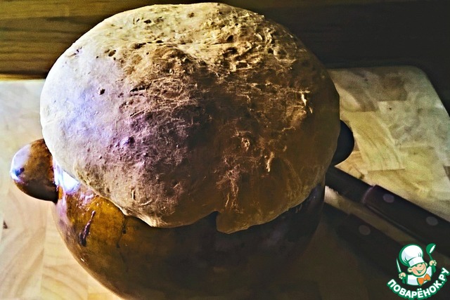Отправляем горшочек на 190 градусов в духовку на 30-35 минут. Если лепешка сильно начнет румяниться - температуру убавить.