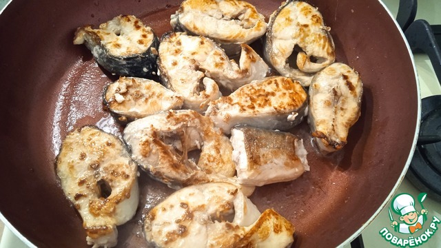 Рыбу обжариваем со всех сторон на среднем огне до золотистого цвета.