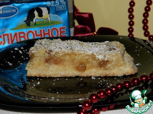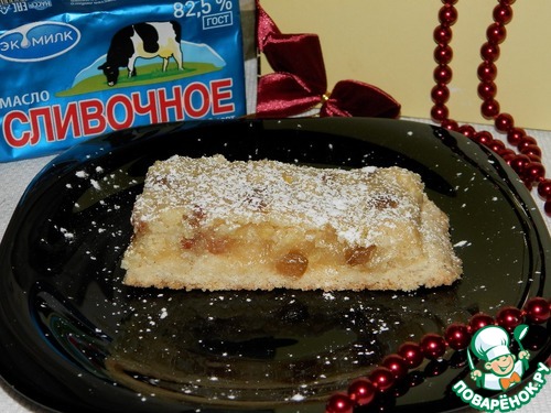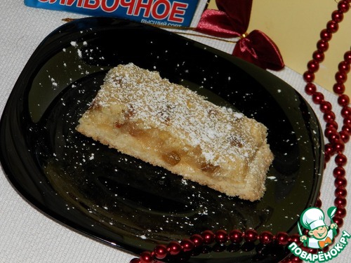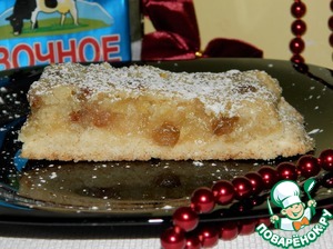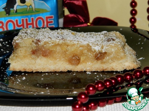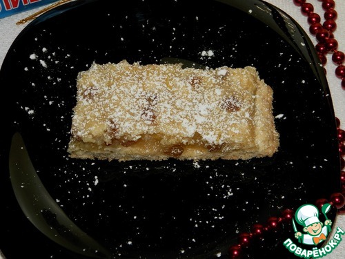 Готовый пирог остудить, нарезать на пирожные и присыпать сахарной пудрой.